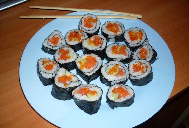 Сіли ми за порожній стіл. За хвилину невістка повернулася із тарілкою суш, які виглядали вже зовсім не апетитно і кілька підсохлих канапок з ікрою. Напевно це все, що залишилось з вчорашньої ночі.