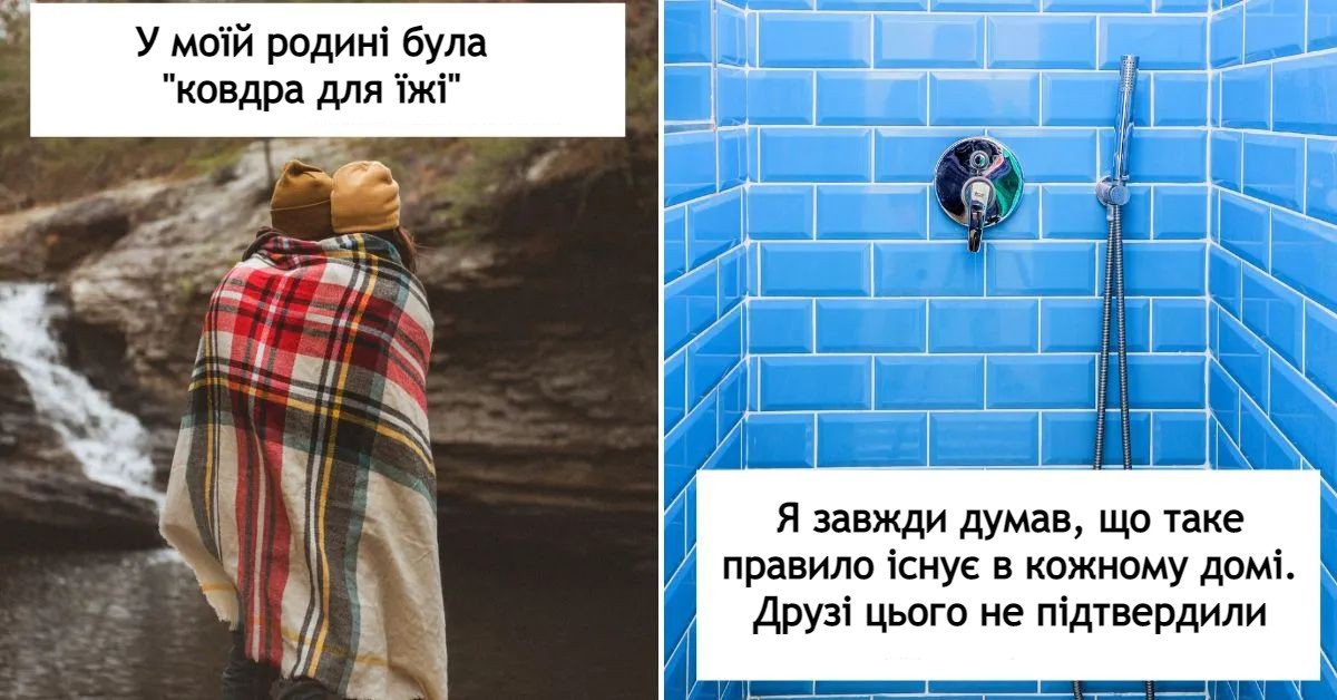 “У моїй родині була цікава річ, яку ми називали “ковдра для їжі”. Коли ми їли щось максимально просте, то часто розстеляли ковдру прямо у вітальні й ставили на неї страви. Виходив невеличкий пікнік прямо вдома. Мене здивувало, що така традиція була лише у нашій родині”.