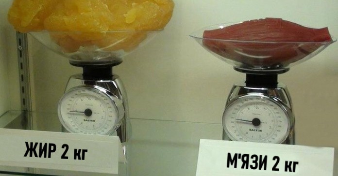 9. Порівняйте 2 кг жиру і 2 кг м’язів