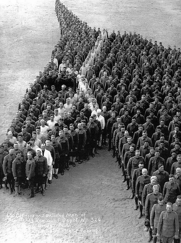 Люди вишикувались у формі конячої голови і утворили живу картину. Нью-Мексико, 1915 рік