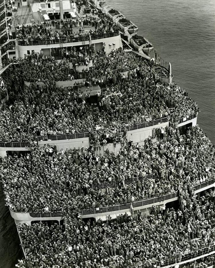 Солдати повертаються з Другої світової війни на судні “Королева Єлизавета”