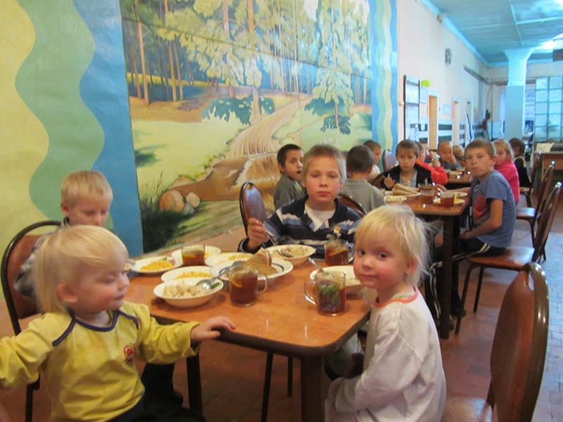 Андрій боязко зайшов до кімнати, де вже снідали дванадцять хлопців. Кожен з них відірвався від своєї тарілки та з цікавістю подивився на нового хлопчика. Він озирнувся по сторонах і сів на вільне місце.