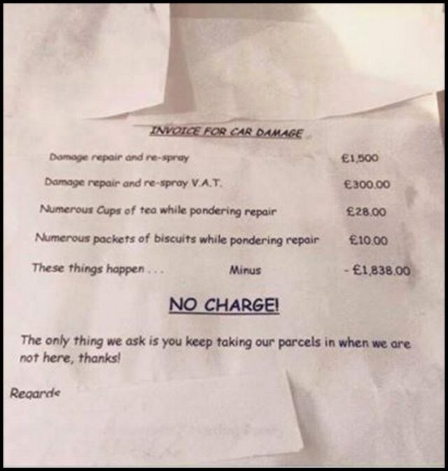 “Негаразд трапляються з усіма. Ми знаємо, що ваш син ненароком пошкодив авто, адже тоді на дворі було слизько через негоду. Нам приємно, що ви не побоялися взяти на себе відповідальність та пообіцяли виплатити всю суму. Однак, ми хочемо, щоб ви й надалі були такою чудовою мамою!”