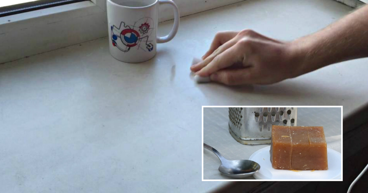 - Господарське мило 72% Натріть брусок коричневого господарського мила на тертці з дрібними отворами. Додайте до стружки трохи гарячої води та перемішайте, щоб вийшла тягуча паста. Нанесіть її на забруднені місця, залиште на кілька хвилин, потім змийте.