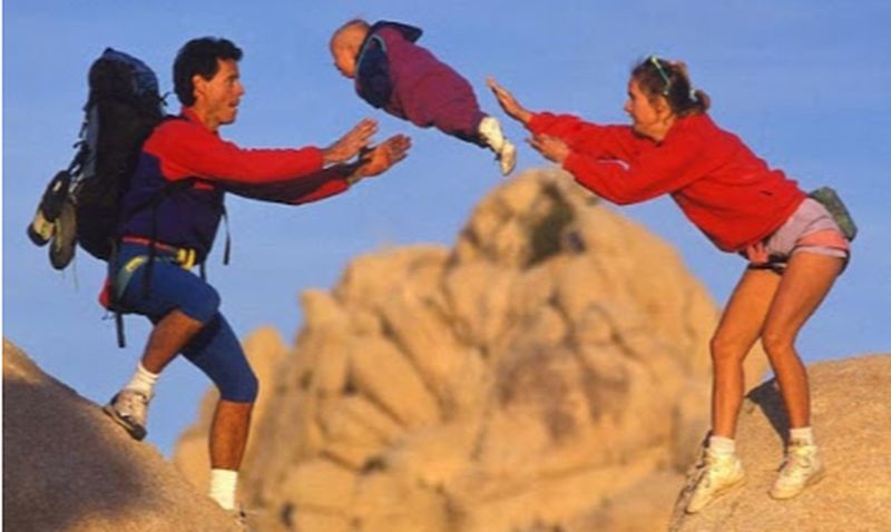 На фото зображена родина Лідс. Грегг Епперсон – фотограф, запропонував цій активній родині провести фотосесію у Національному парку Джошуа-Трі, що в Каліфорнії. Шеррі і Джефф дуже активні люди, тому вони залюбки погодилися виконати трюк. Їм потрібно було перекинути дитину один одному над прірвою. Нічого незвичайного!