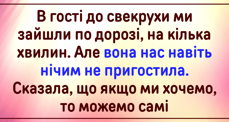 Минулої суботи ми прийшли до свекрухи у гості. Правда, пані Олена нас нічим не пригостила.