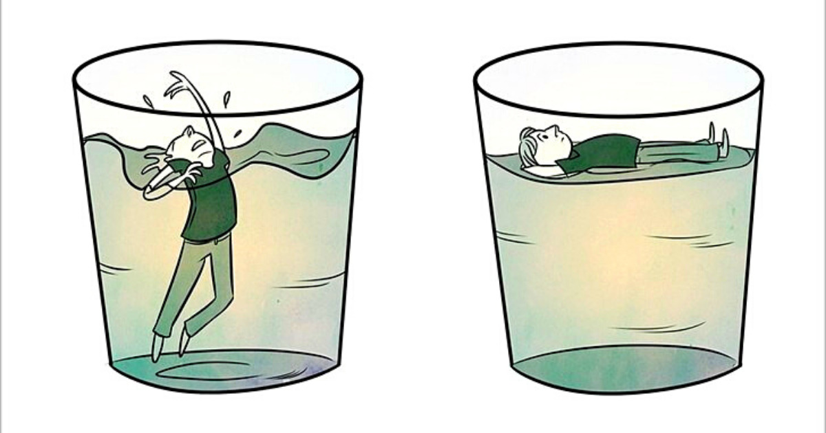 – Вірно, – сказав лектор. – Наші життєві негаразди й труднощі схожі на цю склянку. Поки ми думаємо про них незначну кількість часу – все гаразд, але через тривалий проміжок з’являється біль та дискомфорт. І якщо цього не зупинити, то все закінчиться плачевно.