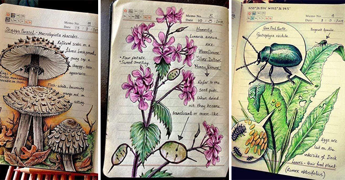 Природа надихає. Ось цей студент біології без сумніву любить своє навчання. Бо навчання дарує йому можливість розвиватися творчо. Ви тільки подивіться наскільки реалістично змальований увесь цей зошит.