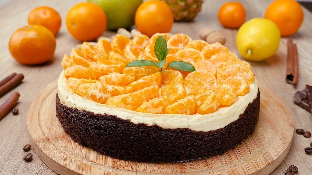 Крок п’ятий – витягуємо із холодильника деко і розподіляємо сирну масу по готовому коржі. Повертаємо деко до холодильника – ще на 2 години. Декоруємо чізкейк мандарином (попередньо очищеним від усього “зайвого”). Заливаємо мандариновим желе, яке ми готуємо за інструкцією. Готово!