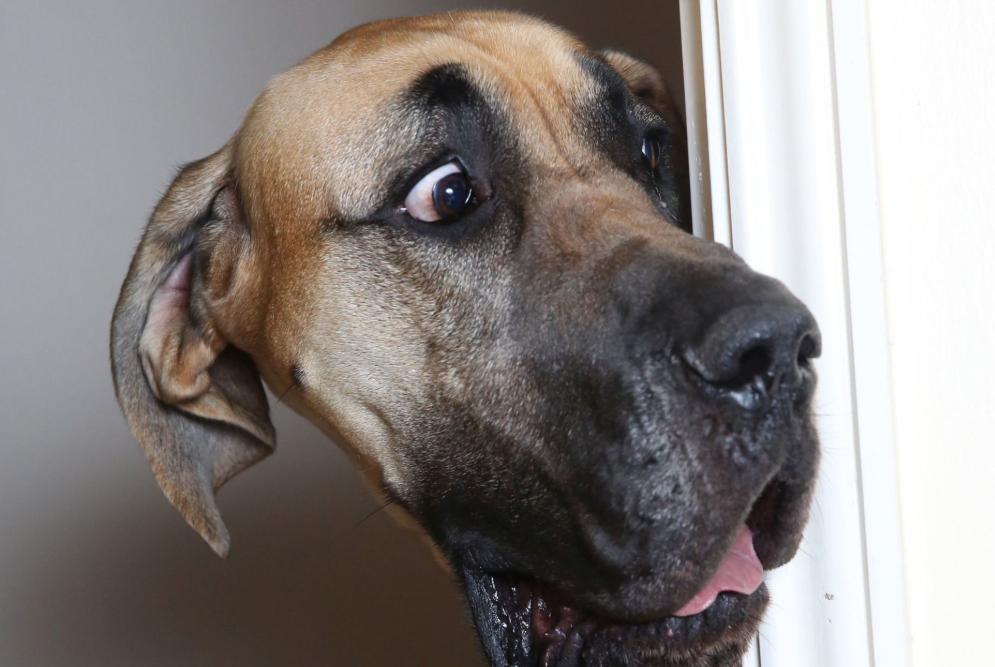 Чоловік стояв, нахилившись до дівчини, відкопиливши заднє місце, поруч з яким і сидів собака. Здригнувшись від несподіванки, він різко розвернувся і впав прямо на п’яту точку, опинившись віч-на-віч із величезним псом. Чоловік, втративши дар мови від страху міг видавати тільки мукання, що і робив всю дорогу, поки повз прямо на дупі до виходу з клініки. Тільки біля самих дверей, натиснув на клямку він встав і жваво вискочив на вулицю.