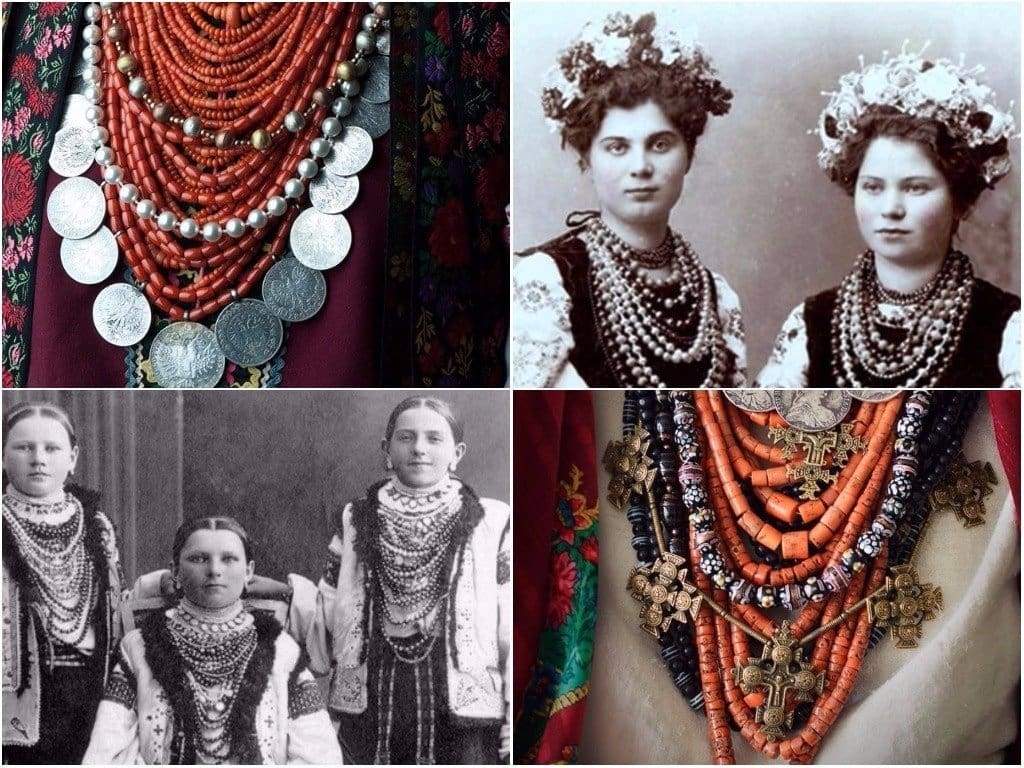 Оберегові та ритуальні прикраси носили лише на тілі: обручки, браслети, хрестики. Ну а ті, що носили поверх одягу, красномовно говорили про достаток господаря: шість ниток коралового намиста, наприклад, коштували, як пара волів. Чим заможнішою була жінка, тим більше ниток намиста носила і тим більші намистини нанизувала. Багачки могли собі дозволити по 10-15 ниток, бідніші дівчата носили не менше 2-3 шнурівки коралів.