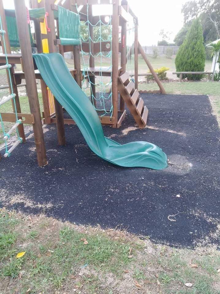 10. Спека перетворила звичайну дитячу гірку на небезпечний атракціон.