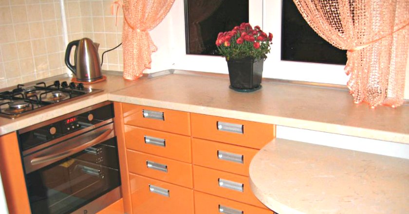 У результаті вийшла велика площа робочої поверхні (80 см), достатня кількість місця для зберігання і холодильник поруч з місцем готування.