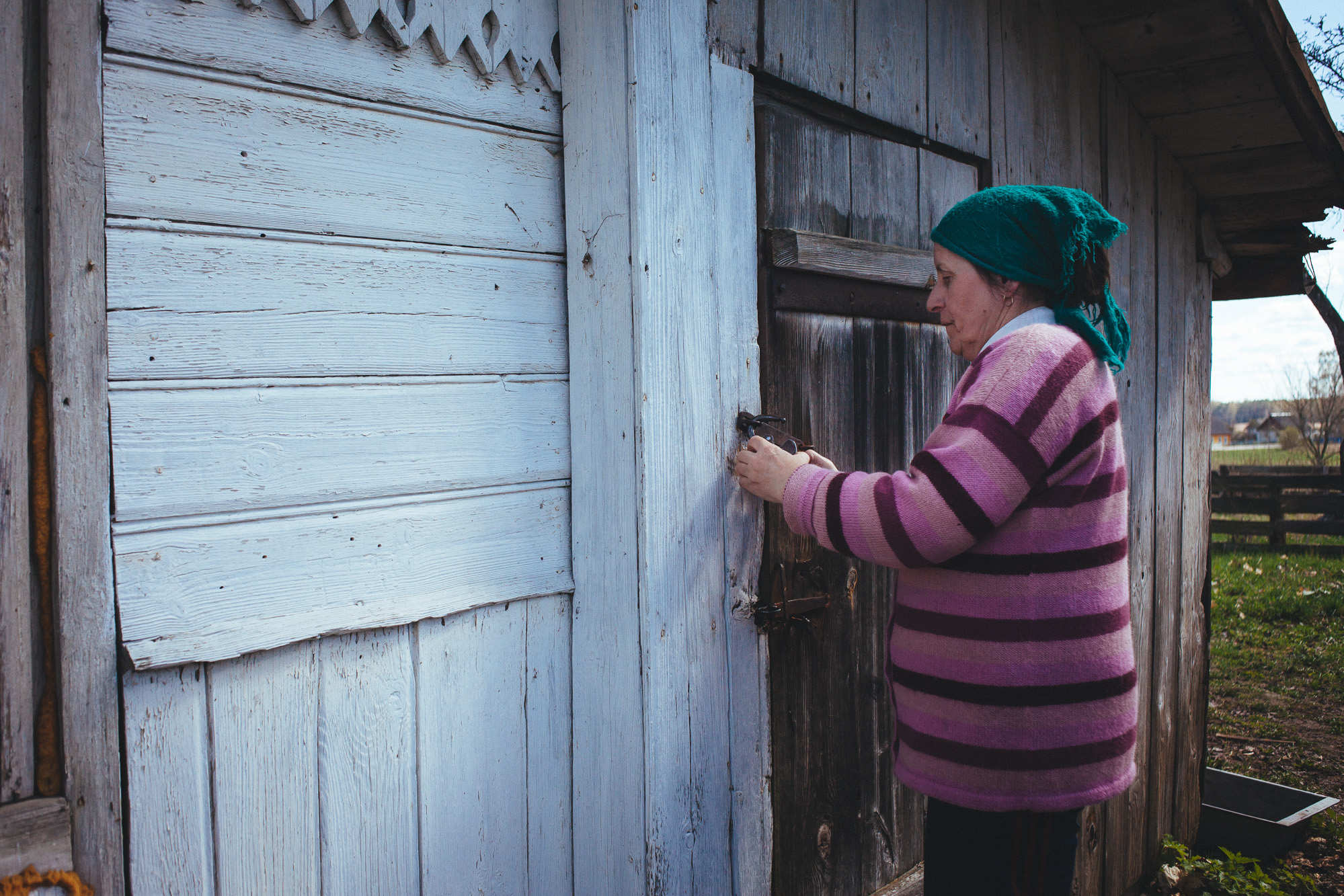 Бабця зайшла у старий сарай. Небезпечно і туди заходити, але ж мені було цікаво. Я прочитала двері і жахнулась. Там стояв пошарпаний диван, на ньому валялось щось схоже на ковдру. Проте, думаю, вона мало що гріла. Заміст стола у бабці був перекривлений стільчик. Вона виклала на нього молоко, хліб та масло з пакета.