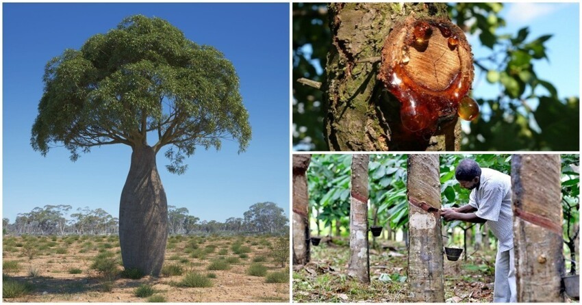 З гевеї бразильської збирають латексний сік, який переробляється на каучук