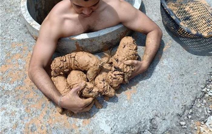 Спочатку йому здалося, що це щурі. Шурачет не міг просто пройти повз і вирішив врятувати їх. Лише внизу хлопець зрозумів, що це маленькі цуценята. Хоча на той момент вони були настільки брудні, що радше нагадували статуї.