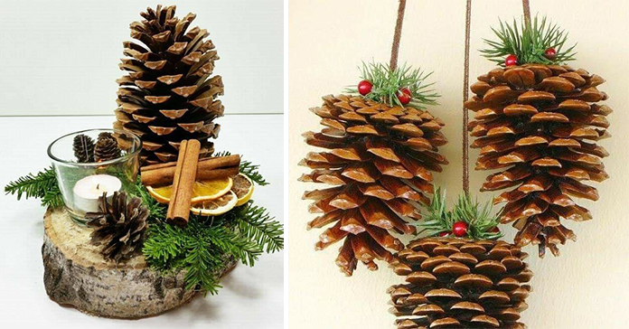 Самі шишки завжди асоціюються у нас із зимовим періодом та атмосферою свята. Вони красуються на віночках, свічках та інших композиціях. Ними можна прикрасити вхідні двері, вільні полиці чи новорічний стіл.