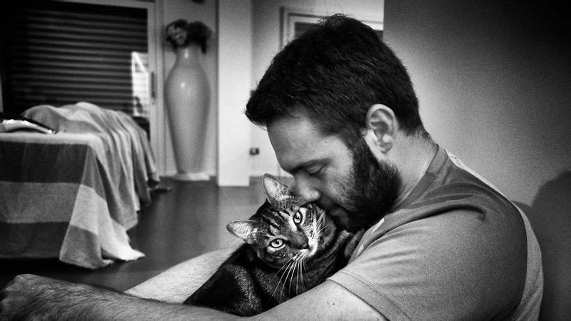 Максим ніжно продовжував гладити кота, а на очах з’являлися сльози. Потім кіт підвівся, став лапами на плечі чоловікові і дивився своїми великими очима.