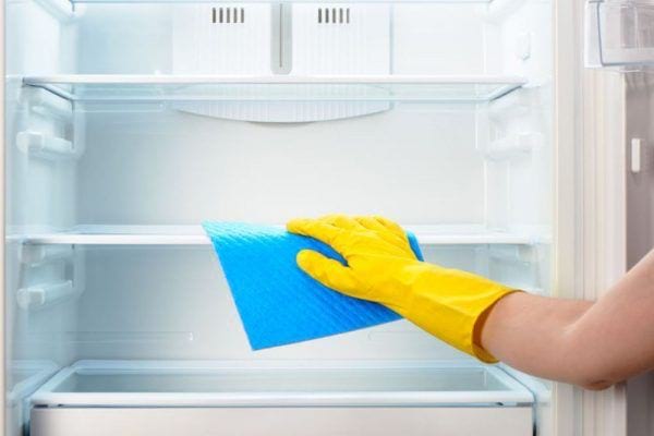 - Лимонний розчин. Варто просто змішати лимонний сік із водою, змочіть ганчірку у розчині і протріть полиці, стінки та ящики холодильника.