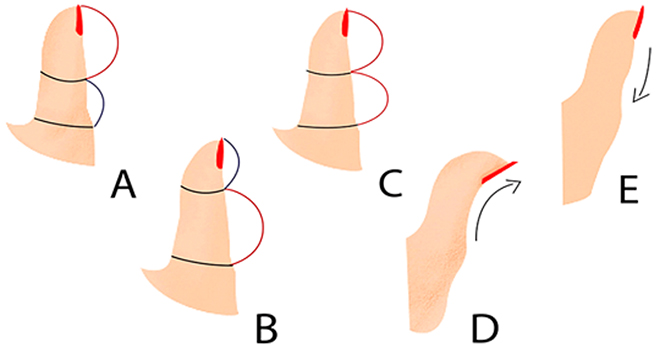 Тип 1. A – верхня половина пальця більша, ніж нижня.