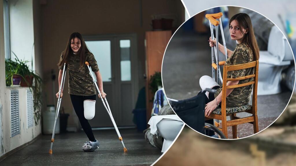 Лікарняною палатою дівчина пересувається або стрибаючи на одній нозі, або користуючись милицям. Про протез поки не йде мова: спочатку має повністю загоїтися рана.