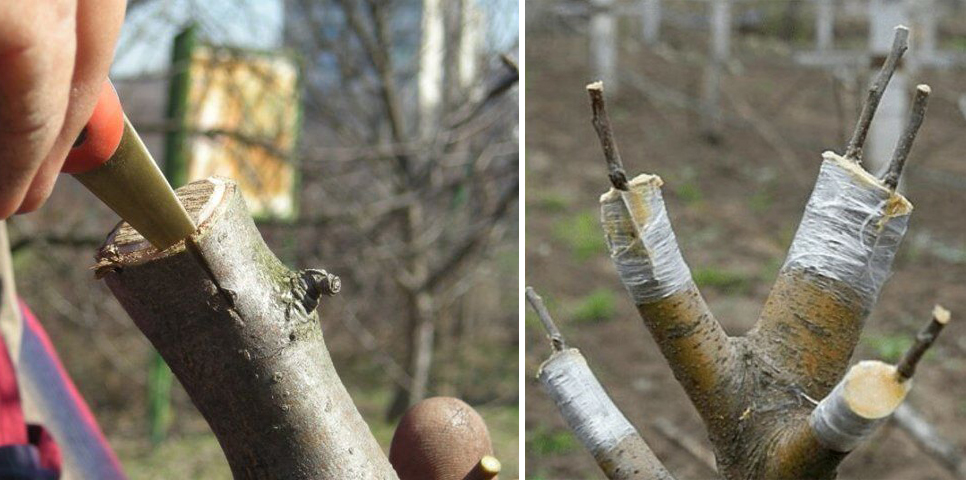 Потрібно спиляти основні гілки дерева на 70-100 см від стовбура, куди щепляться щепи. Дві або три гілки на дереві варто залишити, щоб вони могли вбирати сік. Якщо цей момент опустити, то дерево може загинути.