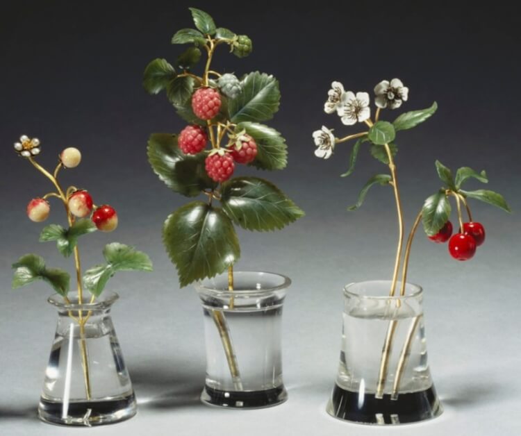 Саме китайський букет поклав початок цілому гербарію. Для створення власних композицій Карл вирощував живі квіти у спеціальній теплиці. Вони служили моделями для кам’яних прототипів. До наших днів зберігся робочий альбом Фаберже, де розміщені детальні фотографії живих квітів. Наприклад, там були ці конвалії, які згодом отримала в подарунок імператриця.