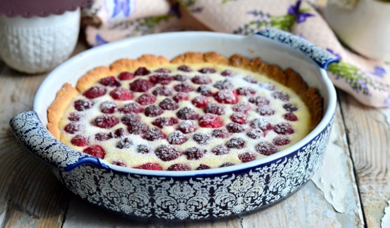 Готуємо крем. Тут усе просто. Необхідно лише збити за допомогою блендера усі компоненти. Згодом стелимо крем поверх уже випеченого коржа та, на завершення, покриваємо його іншою половиною тіста. Випікаємо 30 хвилин. Пиріг подається охолодженим.